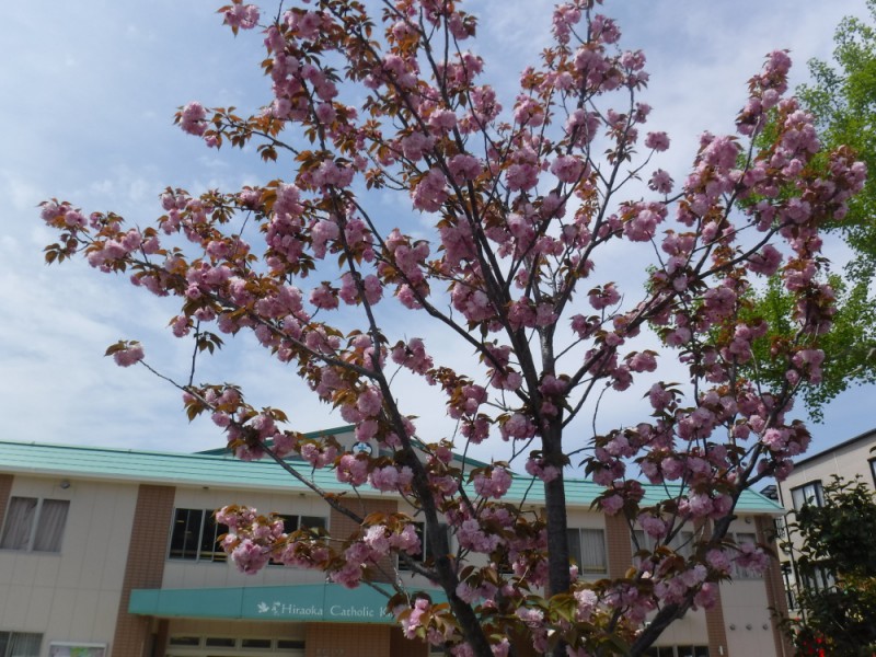 八重桜も満開で、お天気も良く、とてもいい進級式を迎える事が出来ました。