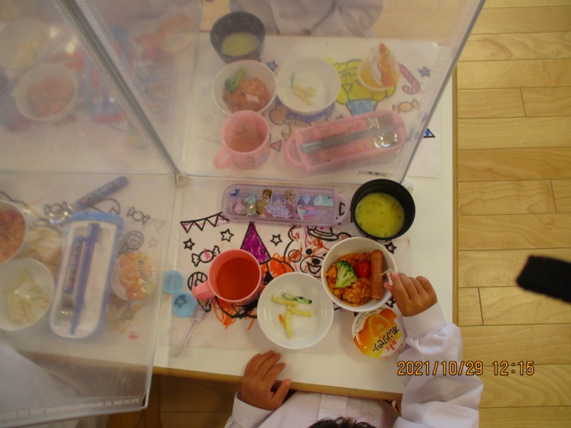 そして給食にはジャックオーランタンの形をしたチキンライスでした♪