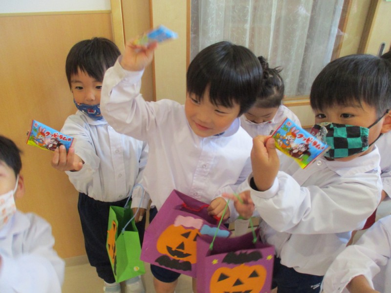 と言いながら、仮装した先生たちからお菓子を貰いました♪