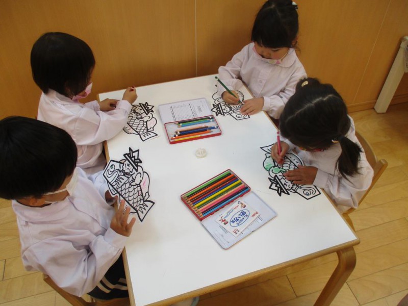 毎日のお仕事、お外遊び、英会話、YMCA、粘土遊び、畑で野菜の収穫、子どもの日のお祝い会などたくさんの事を経験し、毎日楽しく過ごす姿が見られるようになりました♪