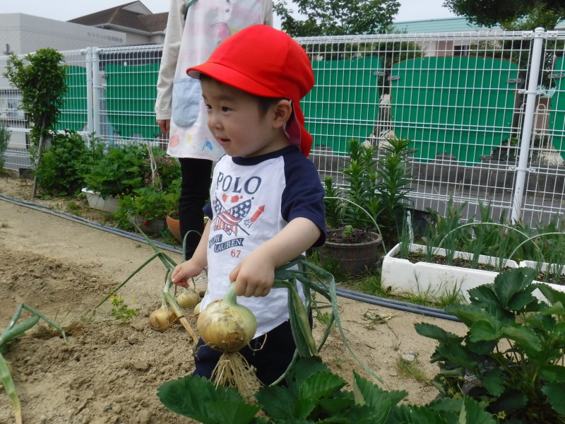 最初は緊張していたひよこ組のお友だちも玉ねぎを嬉しそうにとり、