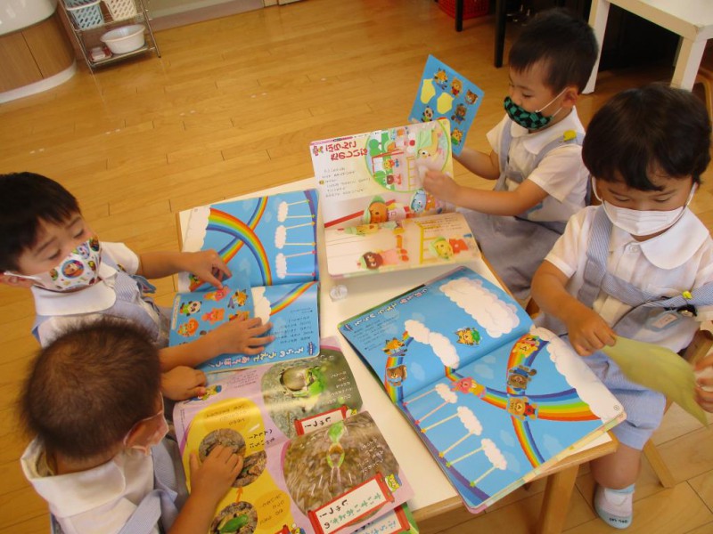 月刊絵本をみんなで読んで、シール貼りをしました。