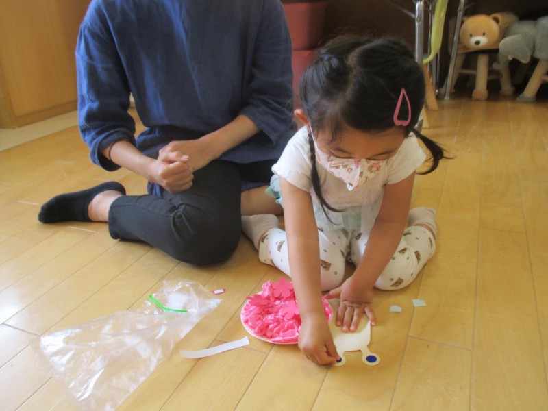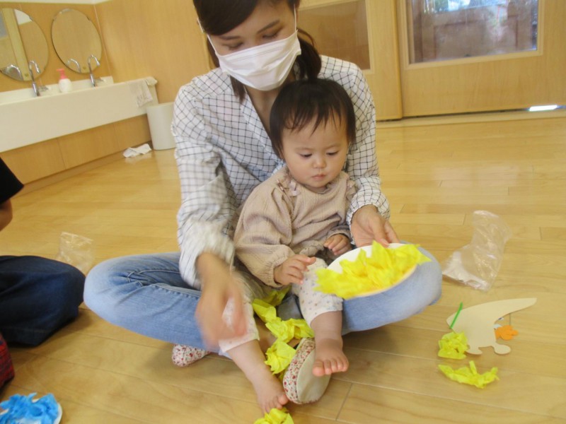 お友だちには、お花紙を手で丸めて、貼ってもらいました。