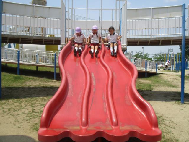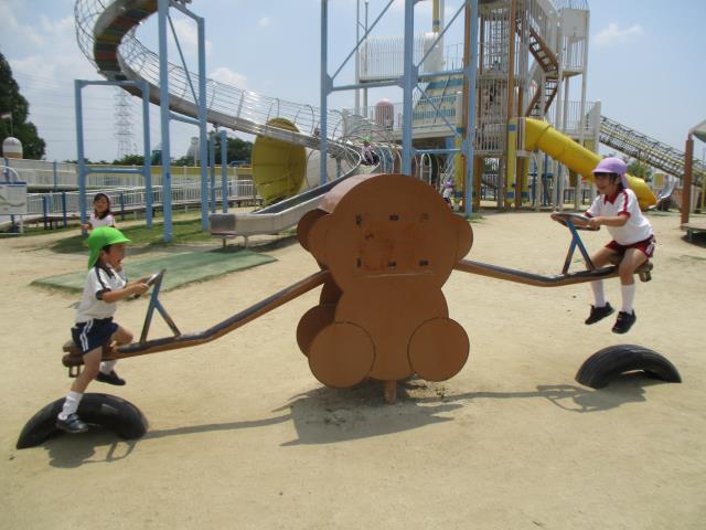 その後も、のびのび広場やロケット公園で遊んだり、みんなでおにぎりを食べたり
