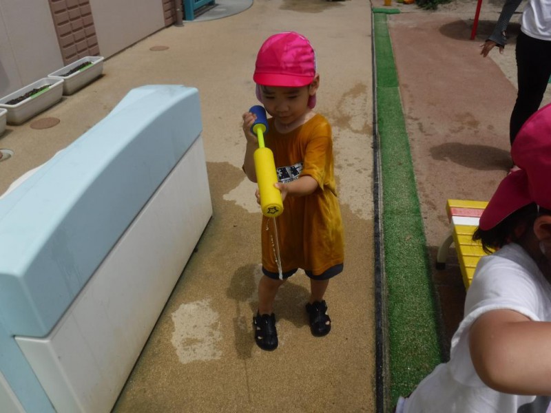お外は暑かったので、冷たい水で遊ぶことが出来て、