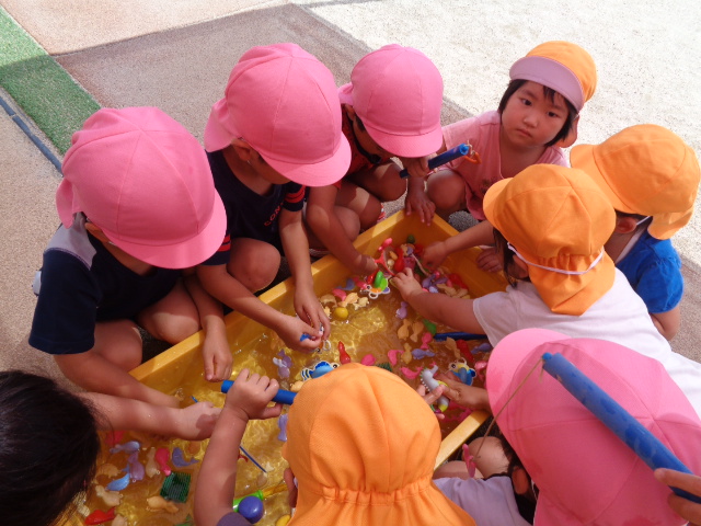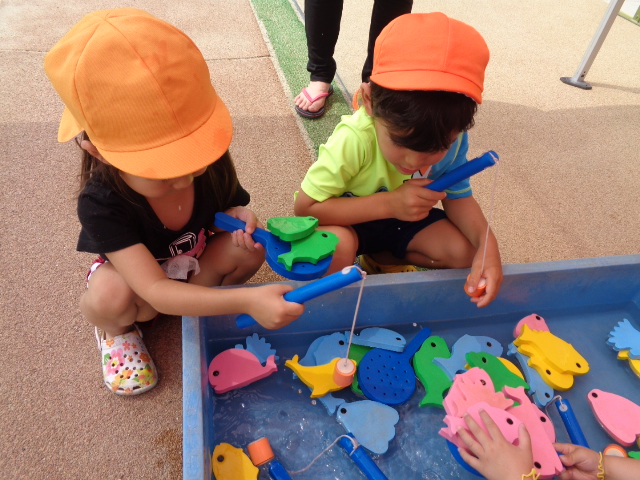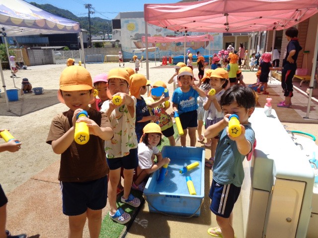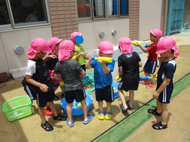 毎日暑いですが、子どもたちは大好きな水遊びを楽しんでいます。