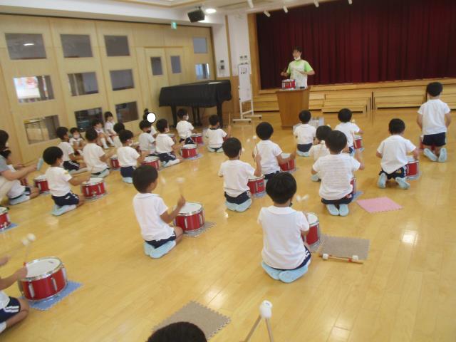 初めて触れる太鼓にみんなわくわくして「たのしい~!」という声がたくさんきかれました!