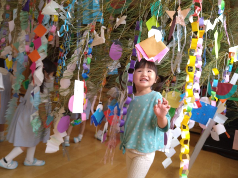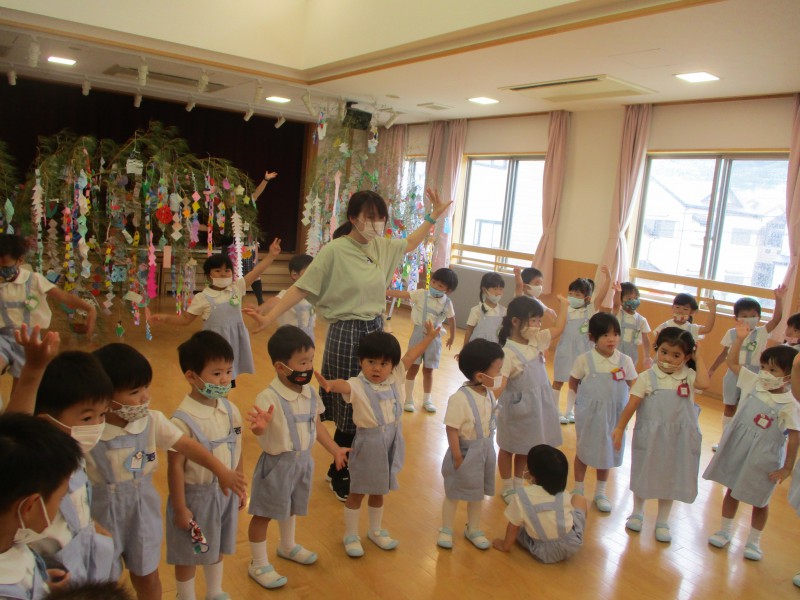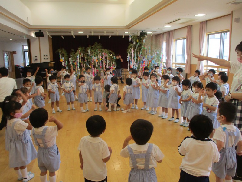 幼稚園では5日の日に、みんなで七夕まつりをしました。