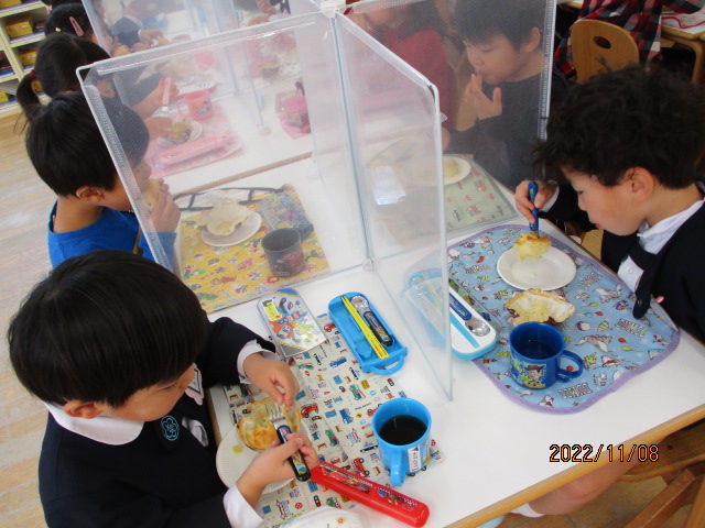 年中組は今週、クッキングと鼓隊遊びをしました。