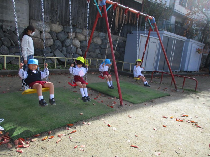 遊具で遊んだり、だれかお友達が落としていってくれていたどんぐりを集めたり、
