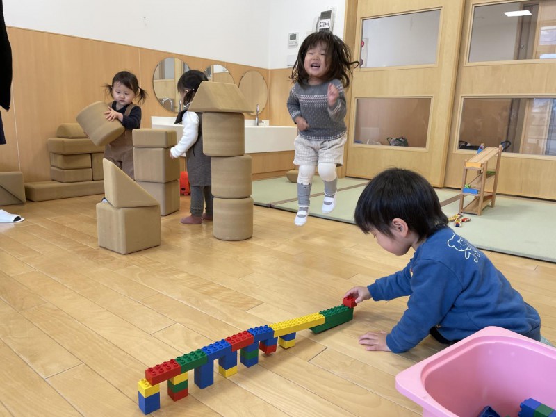 製作の後は、自由活動です。異年齢のお友達同士ですが、仲良く、おもちゃのかしかりも上手にできました。