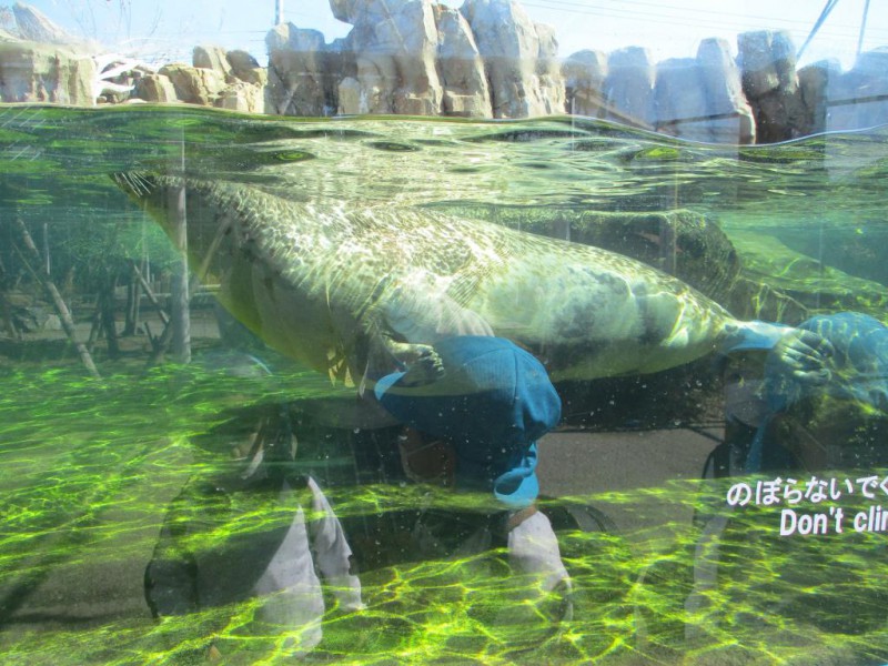 ペリカンショーを見て、ペリカンが目の前を飛ぶたびに