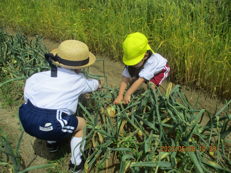 他にも玉ねぎやえんどう豆も収穫しました。