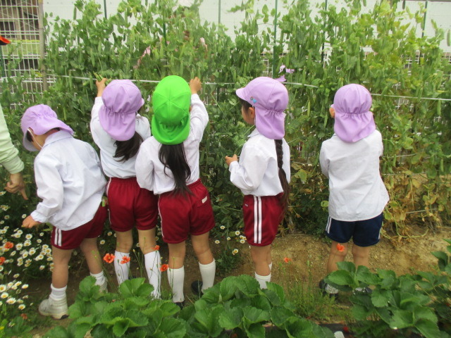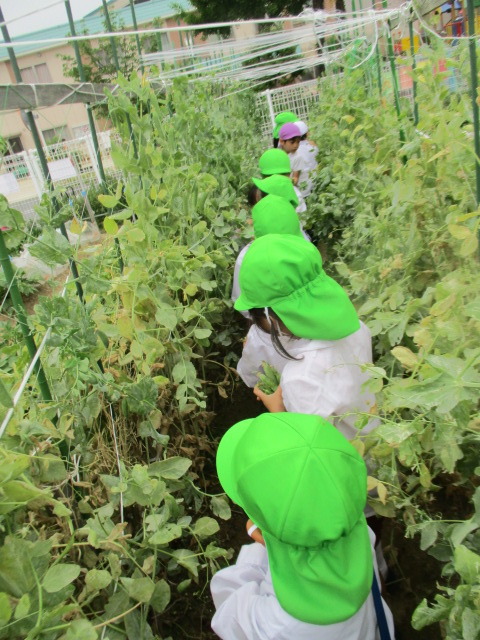 えんどう豆がまだまだたくさんあるため、収穫のお手伝いに行きました。