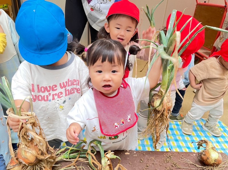 その後は収穫した玉ねぎをみんなで並べて観察!!