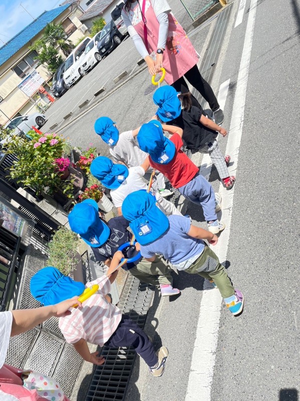 ひよこ組は、初めて見る風景に指をさして「あ!!」と色々な物を教えてくれたり、避難車に乗りながら楽しんでいましたよ♪