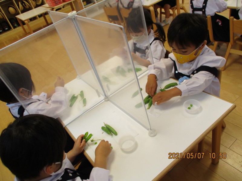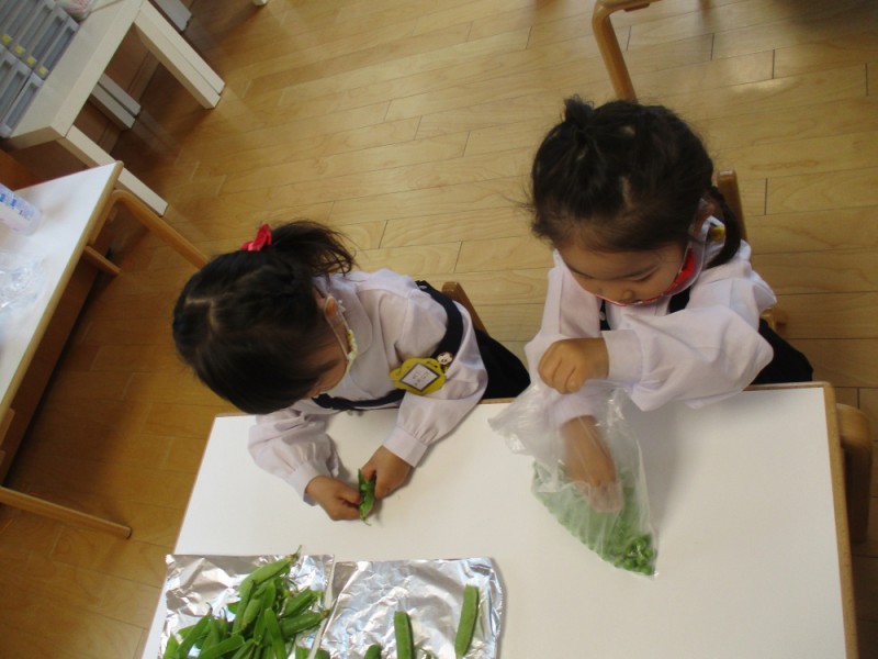 など楽しみながら一生懸命にさやとりをする姿が見られました。