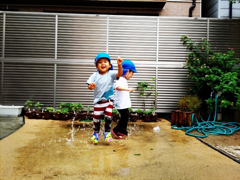 水たまりができた!!バシャバシャバシャ~💦