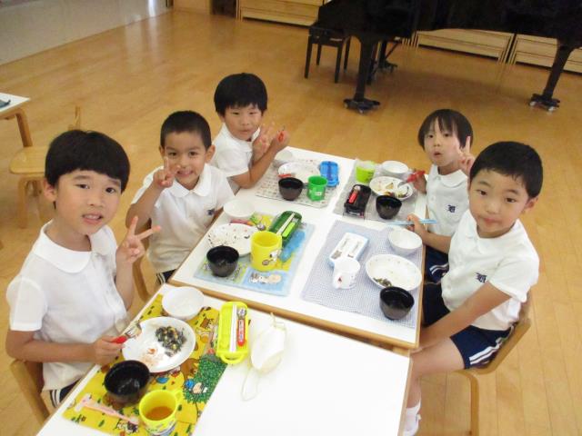 そのあとに給食もみんなで一緒にいただきました。