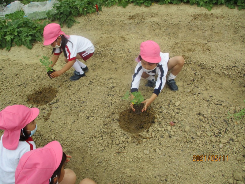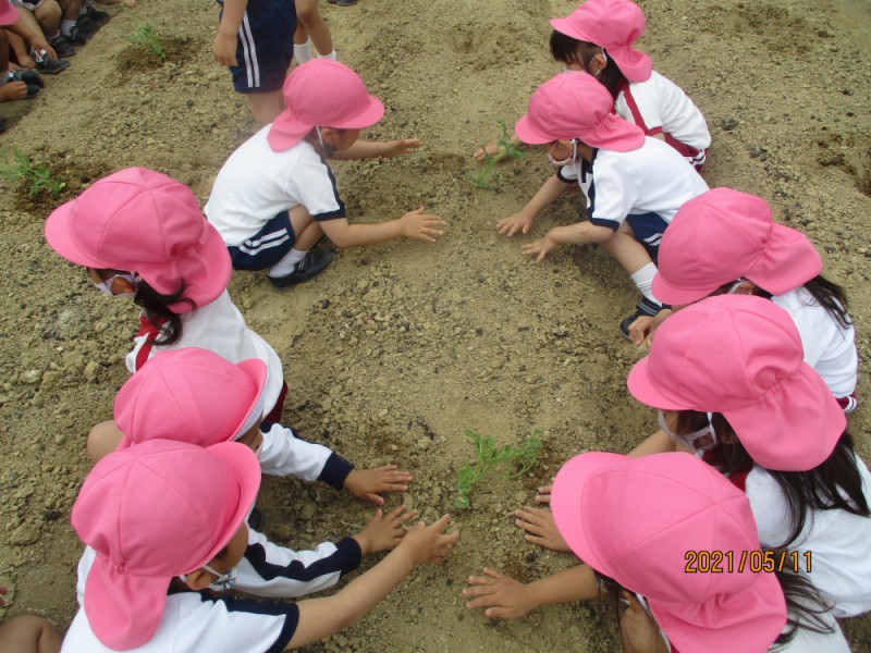 火曜日は畑にすいかの苗を植えました。