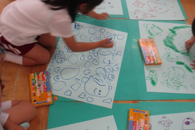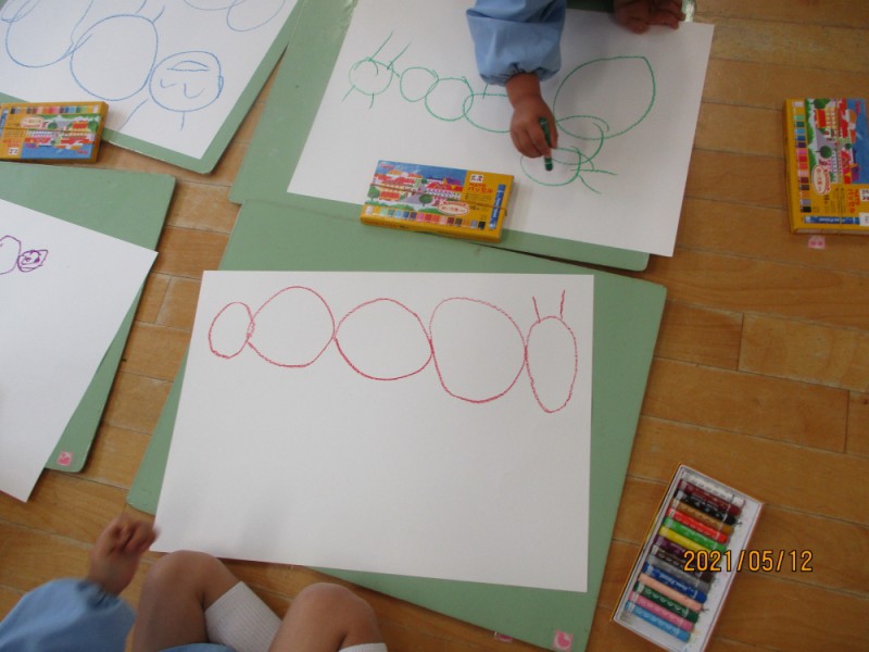 うめ組は「さかな」、さくら組は「あおむし」がテーマでした。
