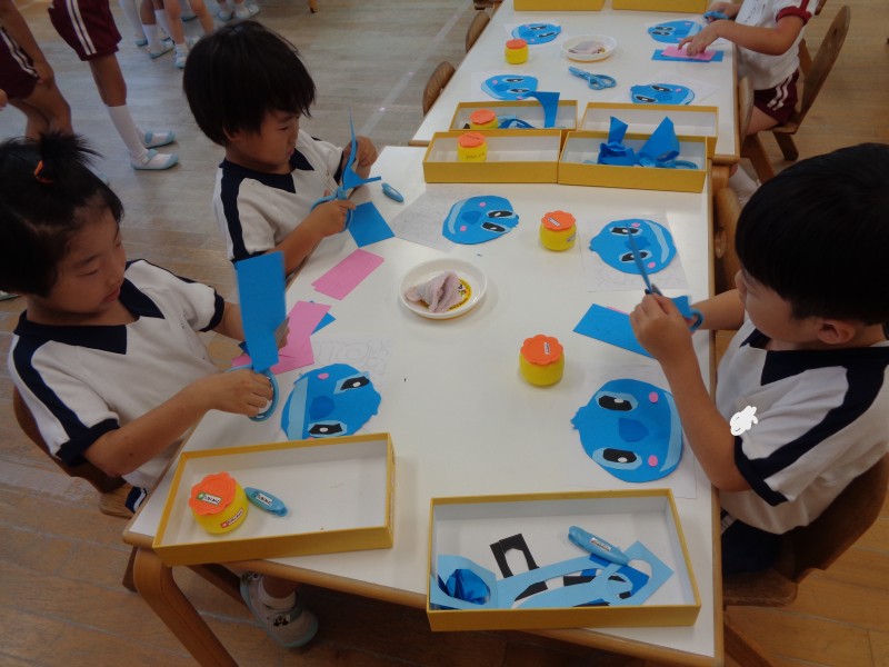 リロ&スティッチの曲に合わせて踊るため、子どもたちは、オリジナルの自分だけのスティッチお面を作ったり、お友だちと楽しくダンスをしながら練習に励んでいます。