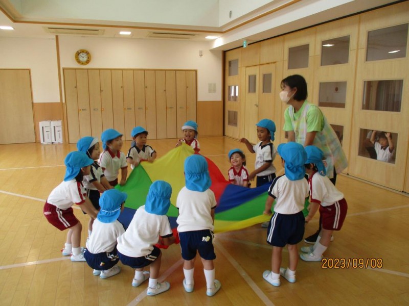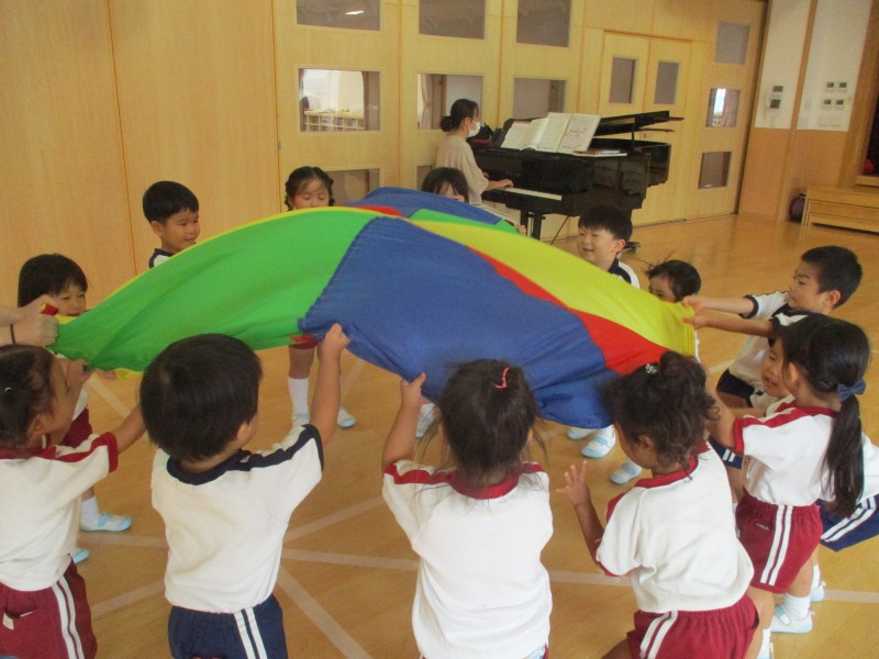 リトミックではパラバルーンで遊びました