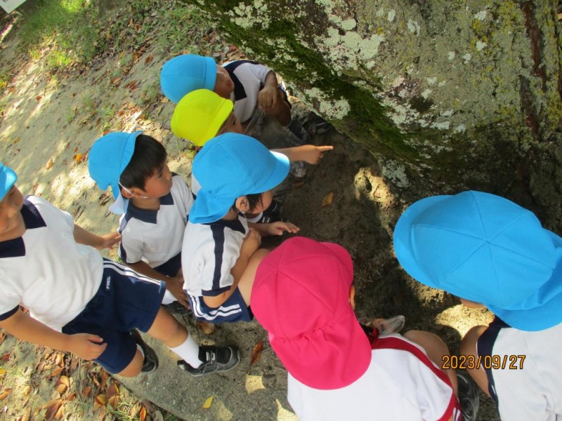 年少組のお友達みんなで幼稚園の近くの公園、「大池公園」にお散歩に行きました。
