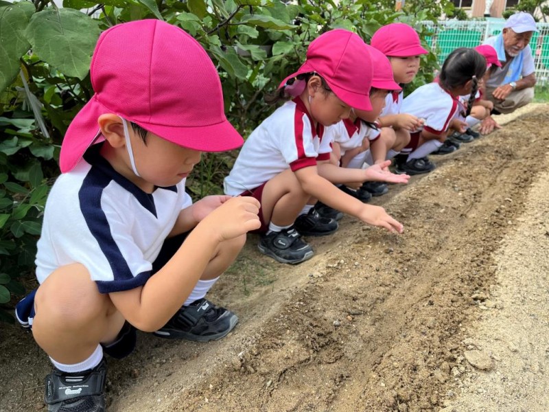 先日は石原さんと一緒に畑でにんじんの種を植えました!