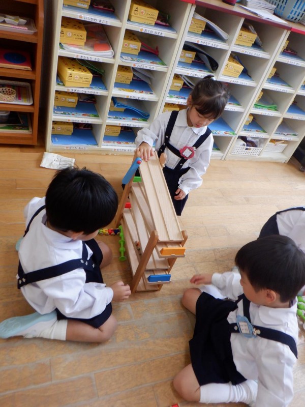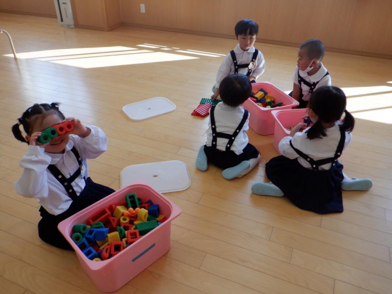 自由活動の時間は、自分たちの好きな遊び、やってみたい遊びを見つけて、楽しい笑い声や話し声が幼稚園にひびいていました。