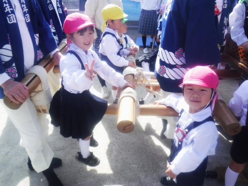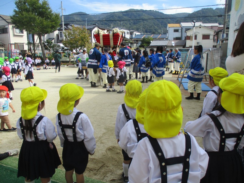 お祭りの太鼓台も幼稚園にきてくれました。