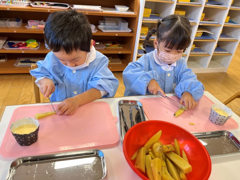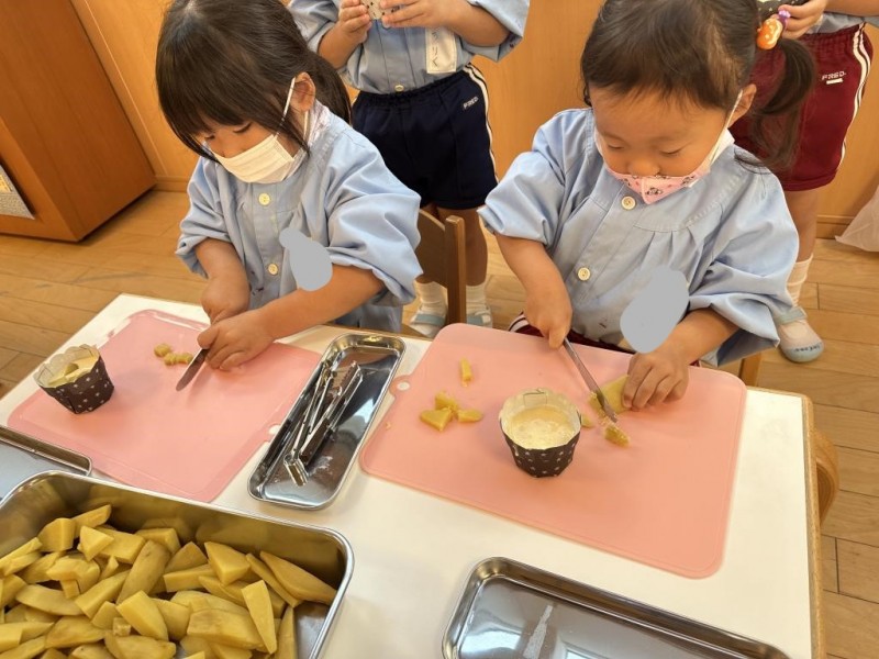 先日のおいもほりのさつまいもを使ってクッキングをしました。