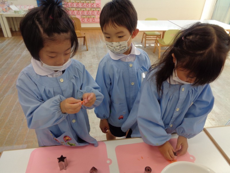 材料を包丁で切ったり、にんじんの型抜きをしたり、スパゲティを割ったり子どもたちは、とても楽しく取り組む姿がありました★