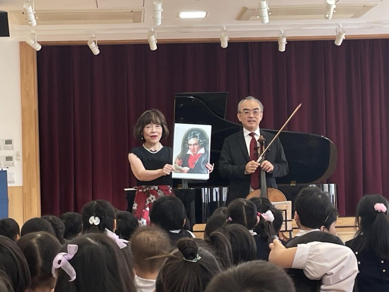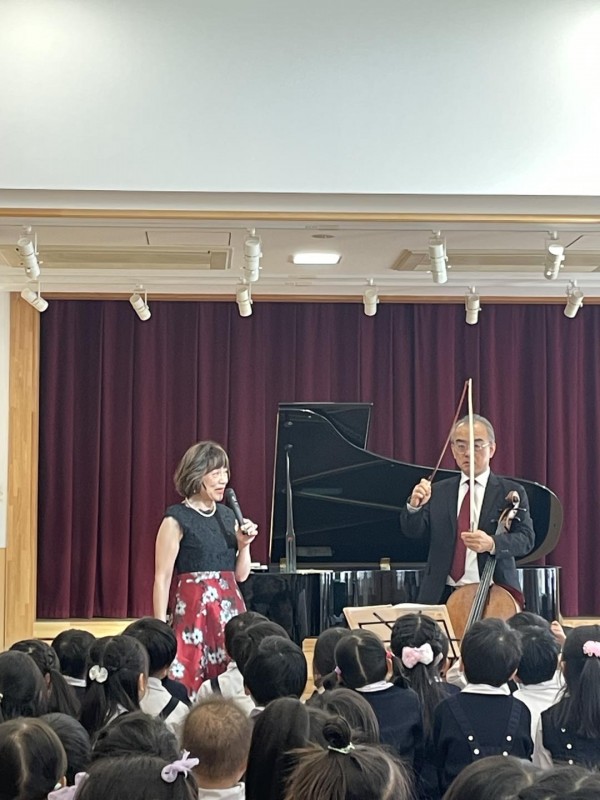 本日は、ピアノ:古川先生 チェロ:藤森先生が演奏して下さいました。
