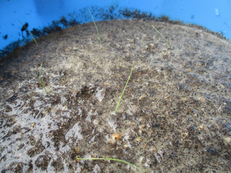 芽が出たのでバケツに植え替えました。これからの成長が楽しみです。