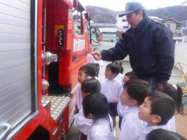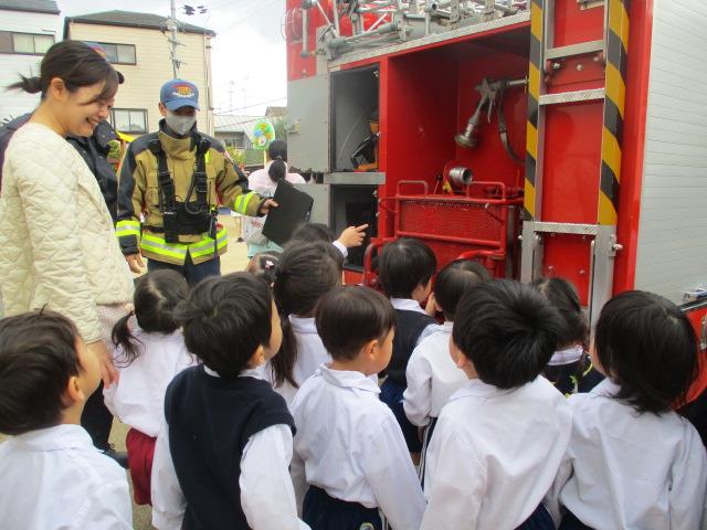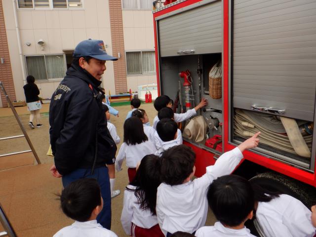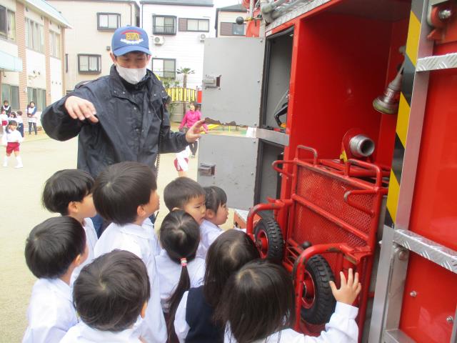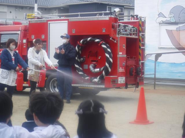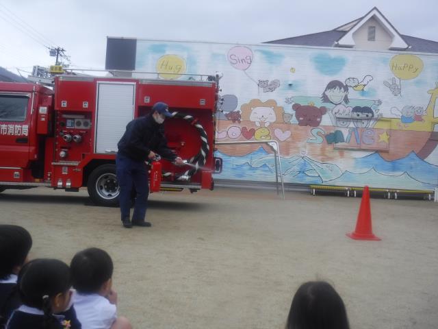 毎月行っている避難訓練に加え、本日は東消防署の方が来てくださり消防訓練も行いました。