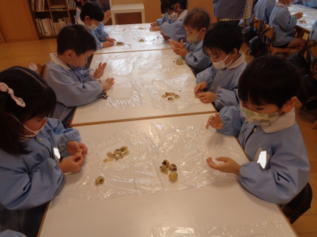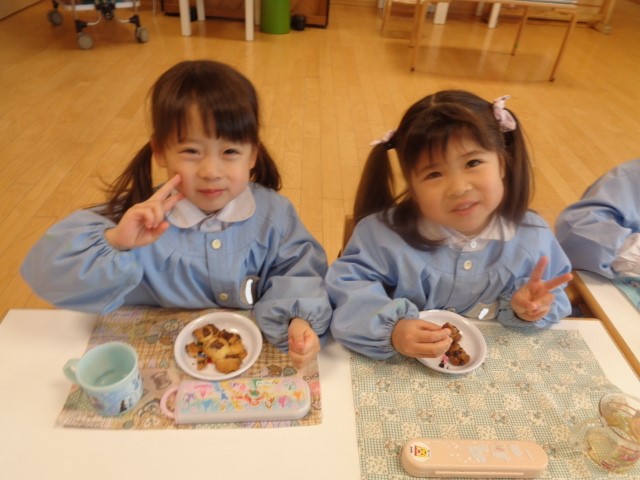 砕いたチョコレートを入れ、自分の好きな形を作りました。