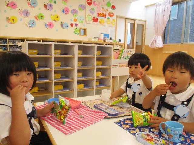 今週はたくさんの製作をしたね。クレパスを使って、「メロンソーダ!」「わたしはぶどう!」など、とても楽しそうにお話しながら描いていたね♪