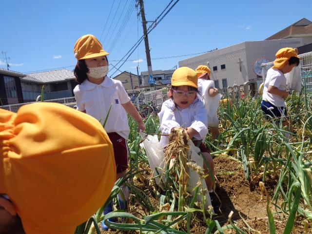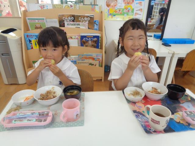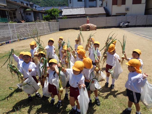 先日持ち帰った幼稚園の畑の玉ねぎ収穫も、とても楽しかったです。お家でお料理してもらったことを幼稚園で嬉しそうにお話してくれています♪年長さんが収穫してくれたじゃがいもを蒸かしてもらい給食で食べました🍴
