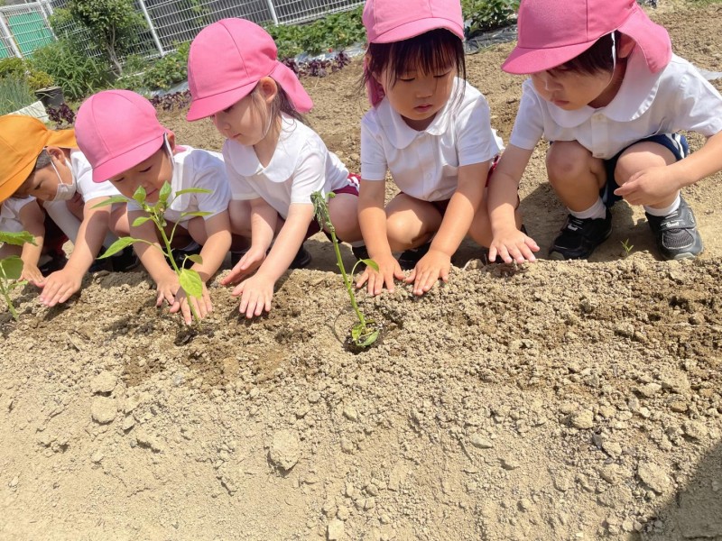 最近の出来事としては、年中組で夏野菜【ピーマン】【きゅうり】【にんじん】を植えに行きました。苗から育てるものと、種をまいて育てることにチャレンジしました。これから当番活動で水やりをしたりみんなで生長観察をしていきたいと思います☺