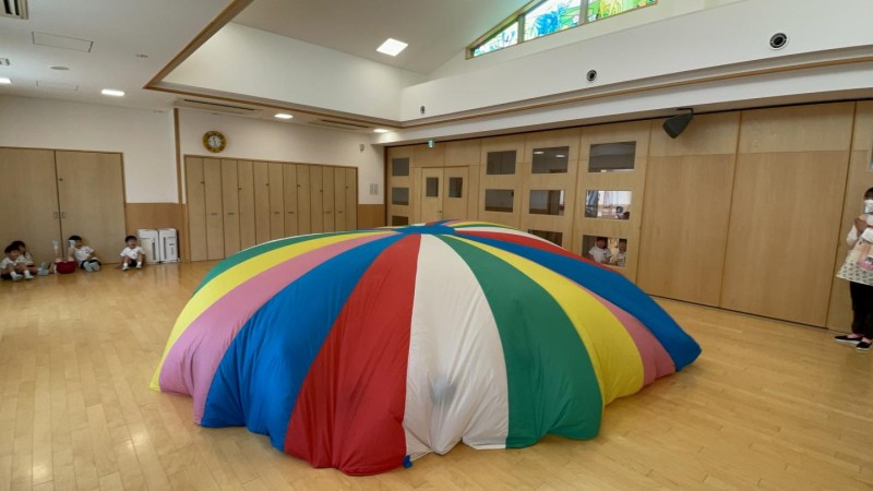 また年少の時から憧れていたパラバルーンをすることができて、とても喜んでいました。大きく膨らんだり、中に入ると大興奮の子どもたちでした。運動会に向けてみんなで楽しく取り組んでがんばっていこうね🏁