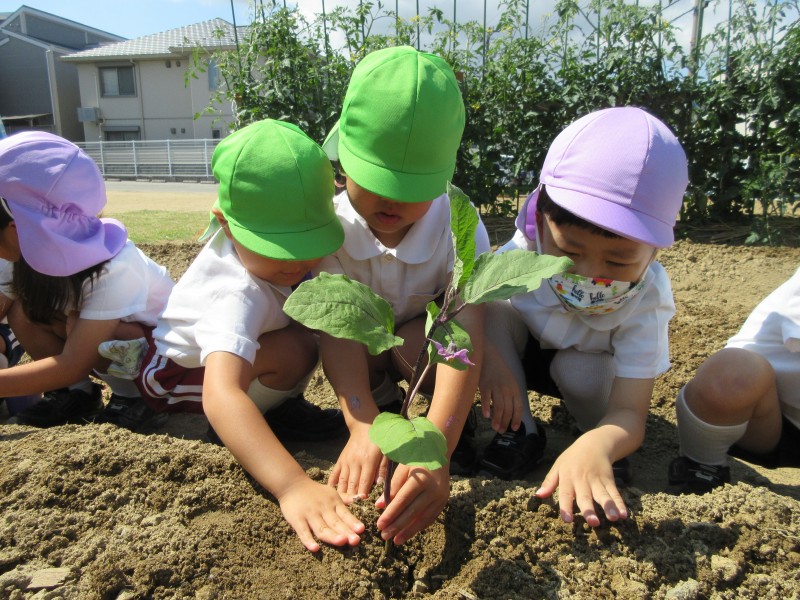 交通安全教室、クッキング、畑に苗を植えたりしました。
