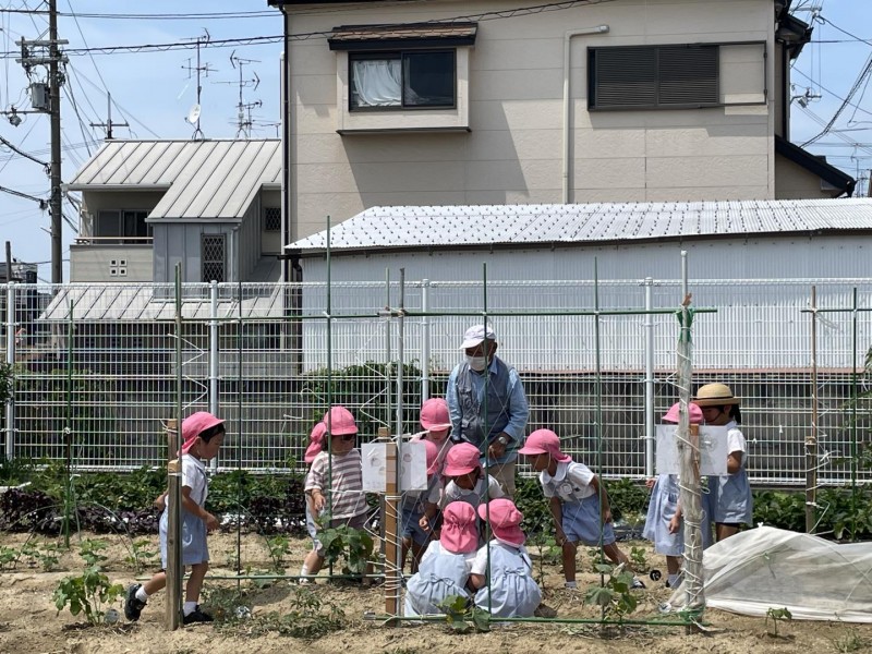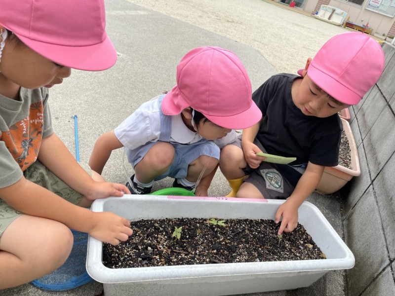 朝顔の種を植えました。少し芽が出てきて、子どもたちは大喜びでした♪