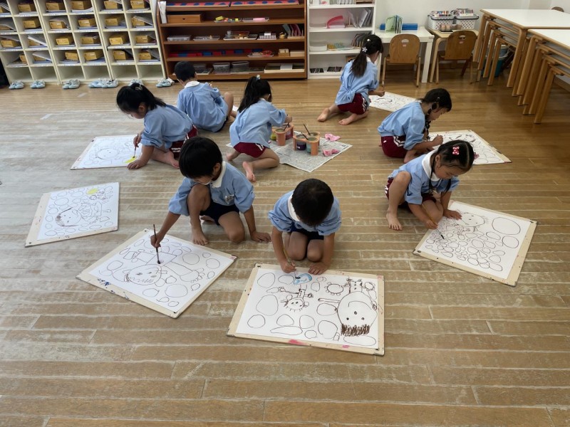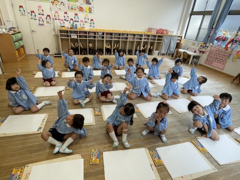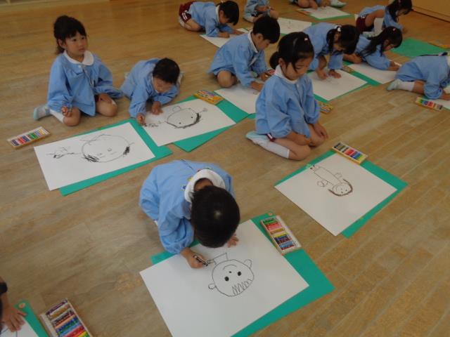大きいしゃぼん玉、小さいしゃぼん玉や自分の顔やお友だちを楽しそうに描いていました。
