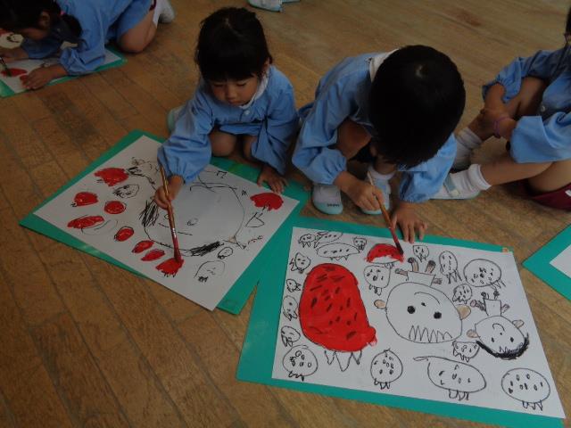 「○○くんを描いたよ」「おっきないちごがあったよね」など、その時の話をしながら、楽しく描きました。