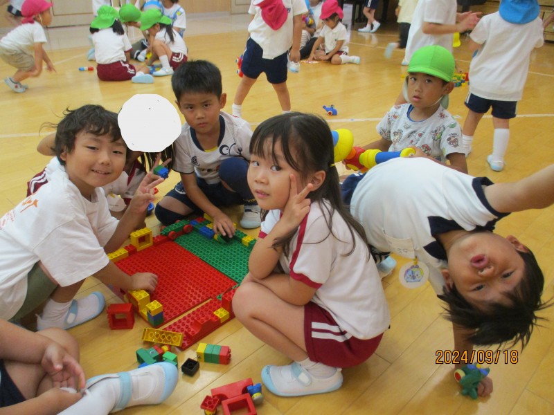 給食をみんなで楽しく食べたり、ホールでおもちゃで遊んだり、