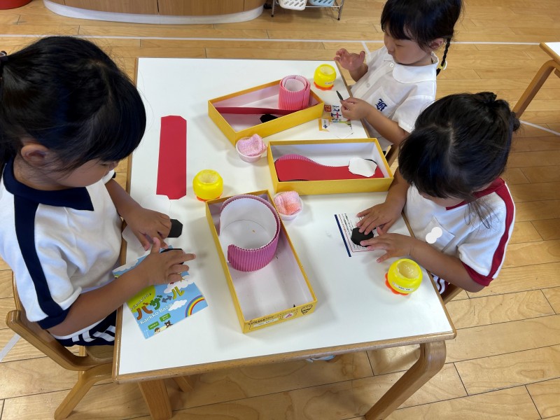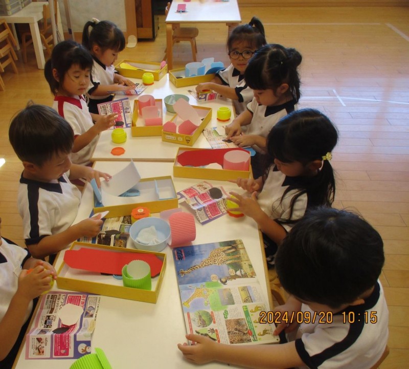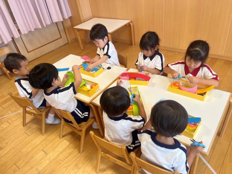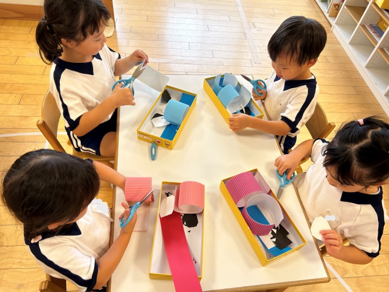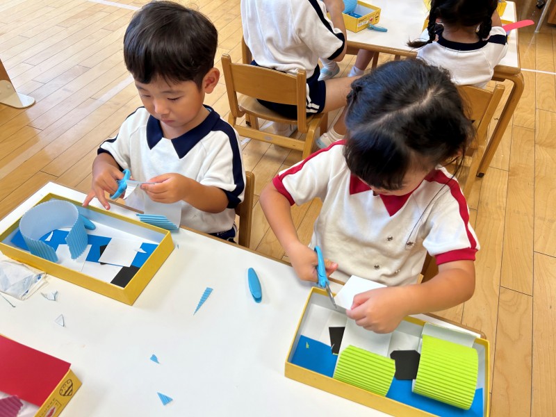 初めて、画用紙の角切りに挑戦!!苦戦しながらも自分達で完成させることができました。