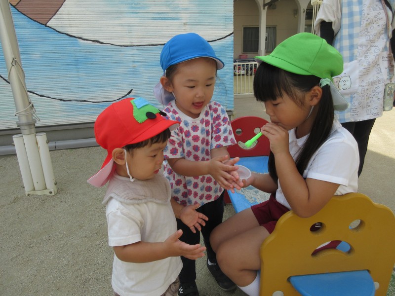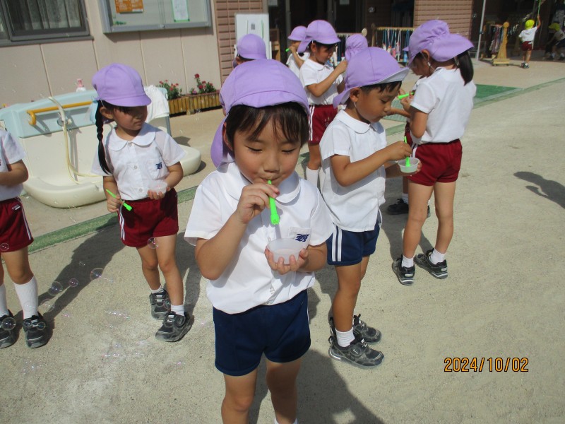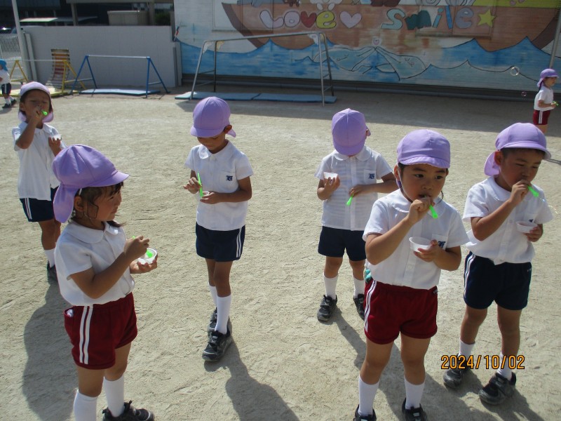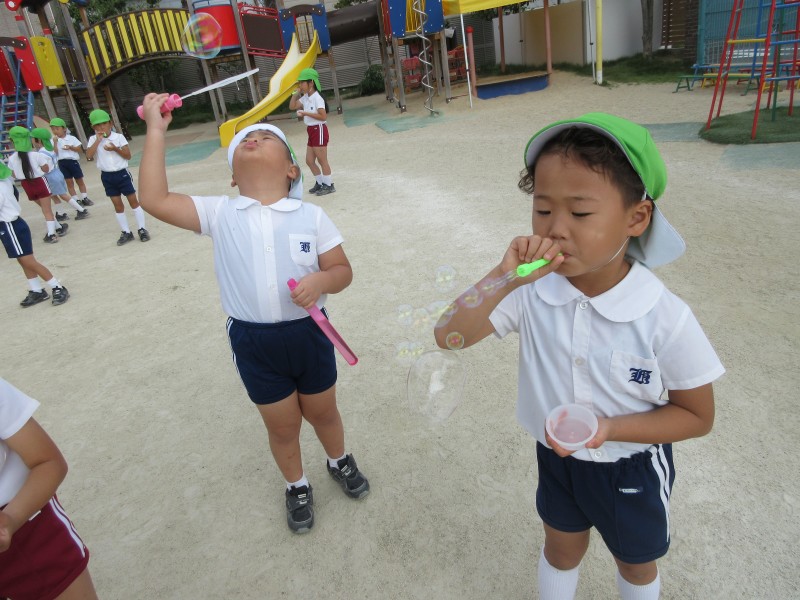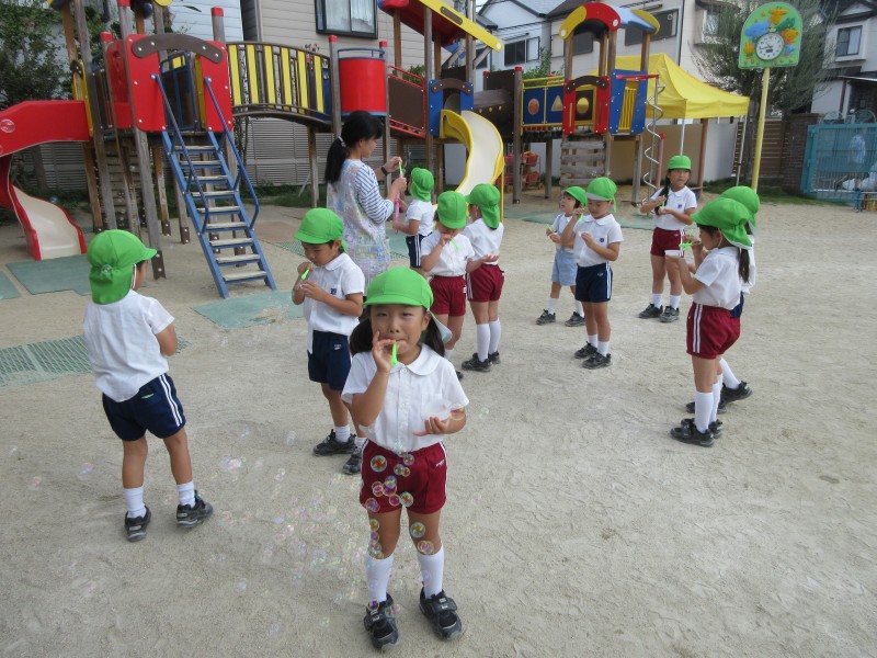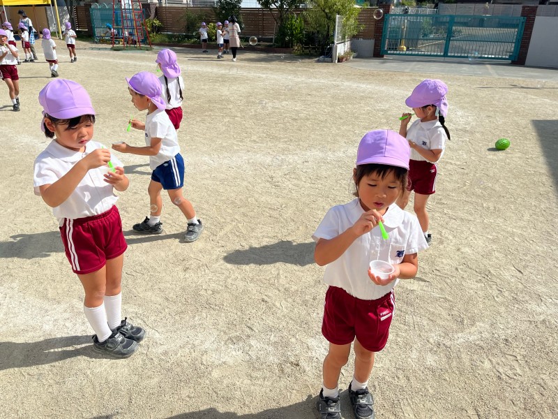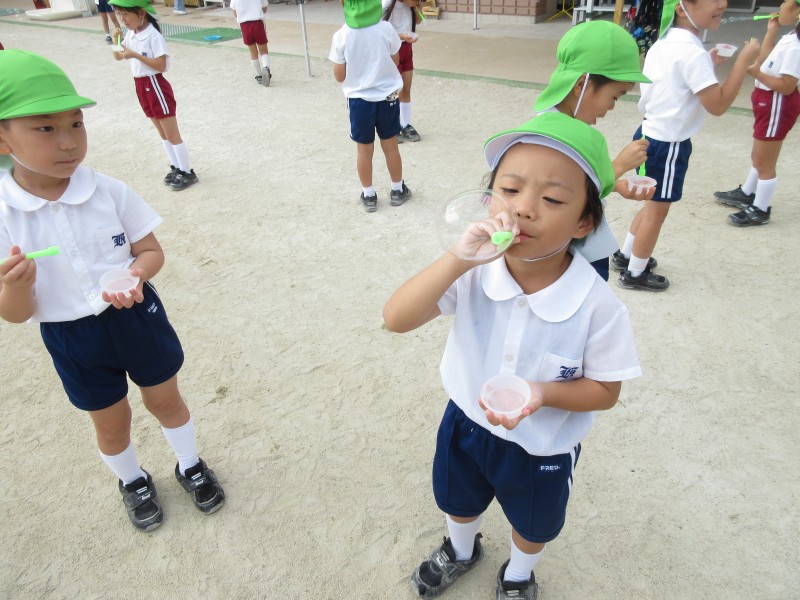 大きいシャボン玉作りに挑戦したり、シャボン玉を追いかけたり、