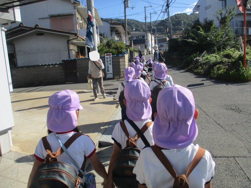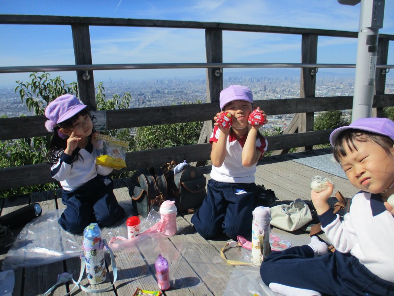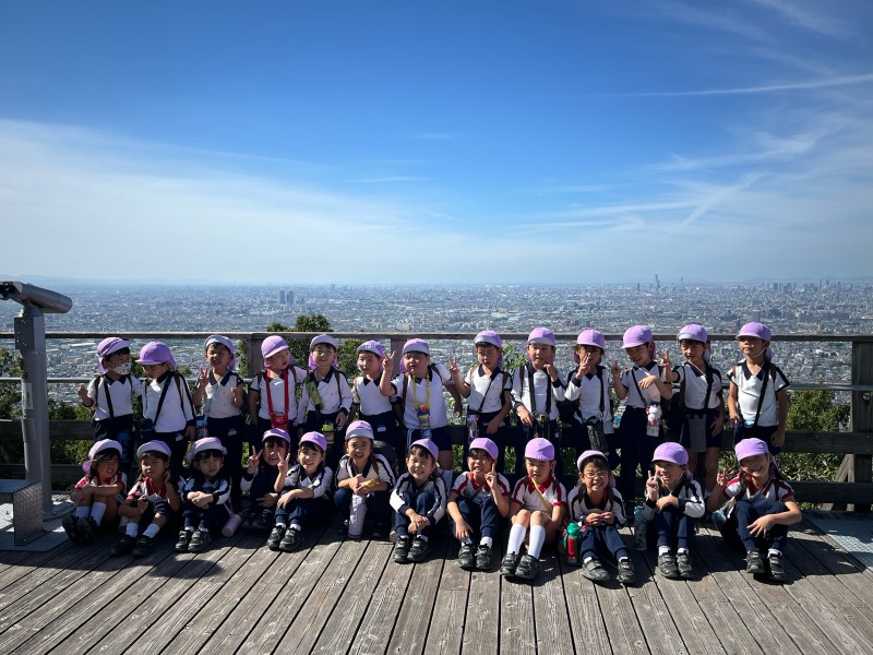 みんなで、まず、幼稚園かららくらくセンターまで歩きました。そして、さらに、頂上であるみはらし台まで歩きました。