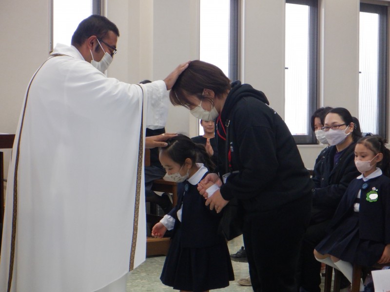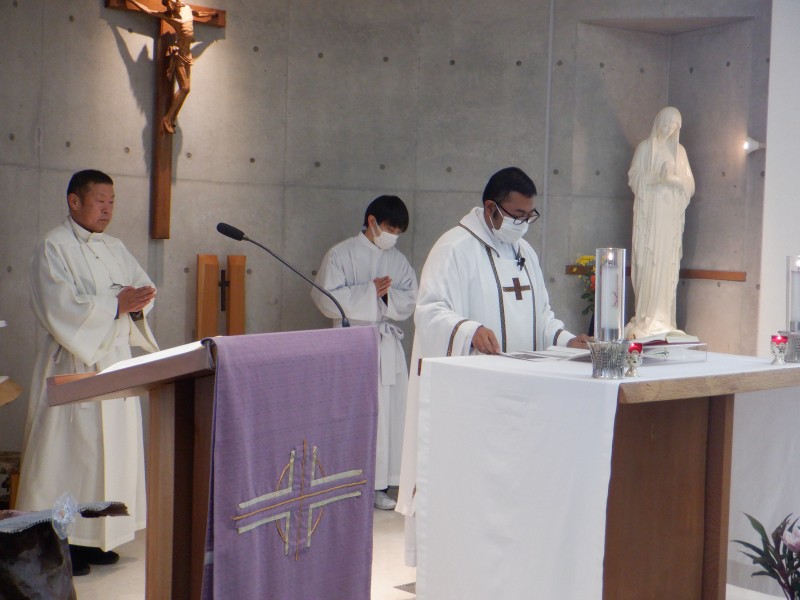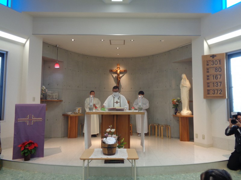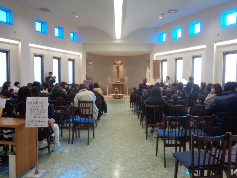 みんなで聖歌を歌ったり、神父様のお話を聞いたり、お祈りをしながら、